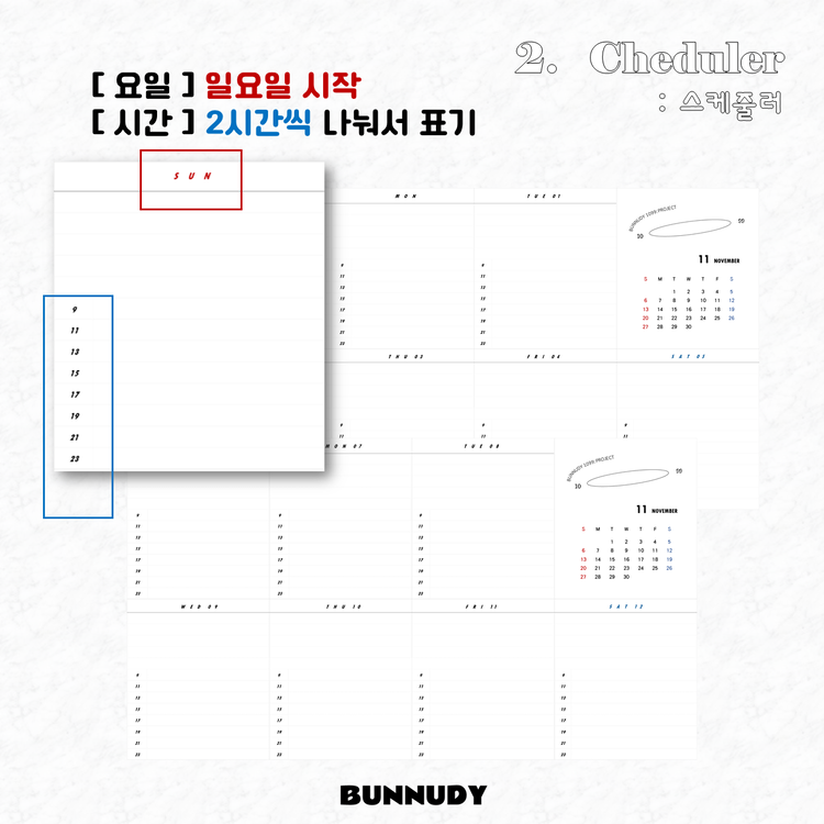 기본 구성 : 표지, INDEX, Plan, Monthly, Weekly