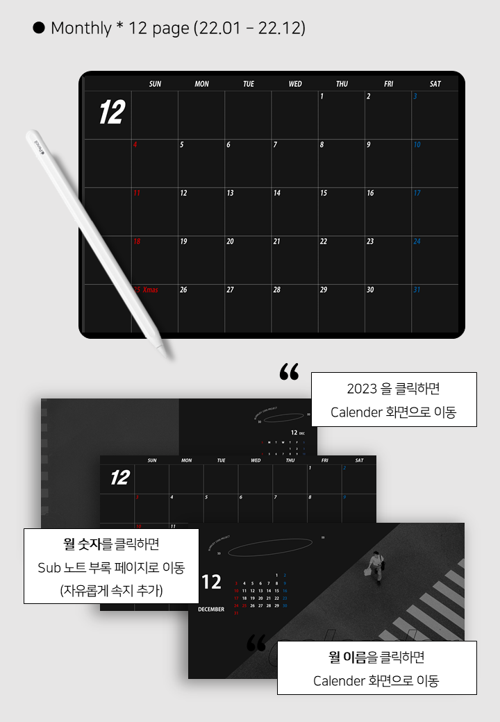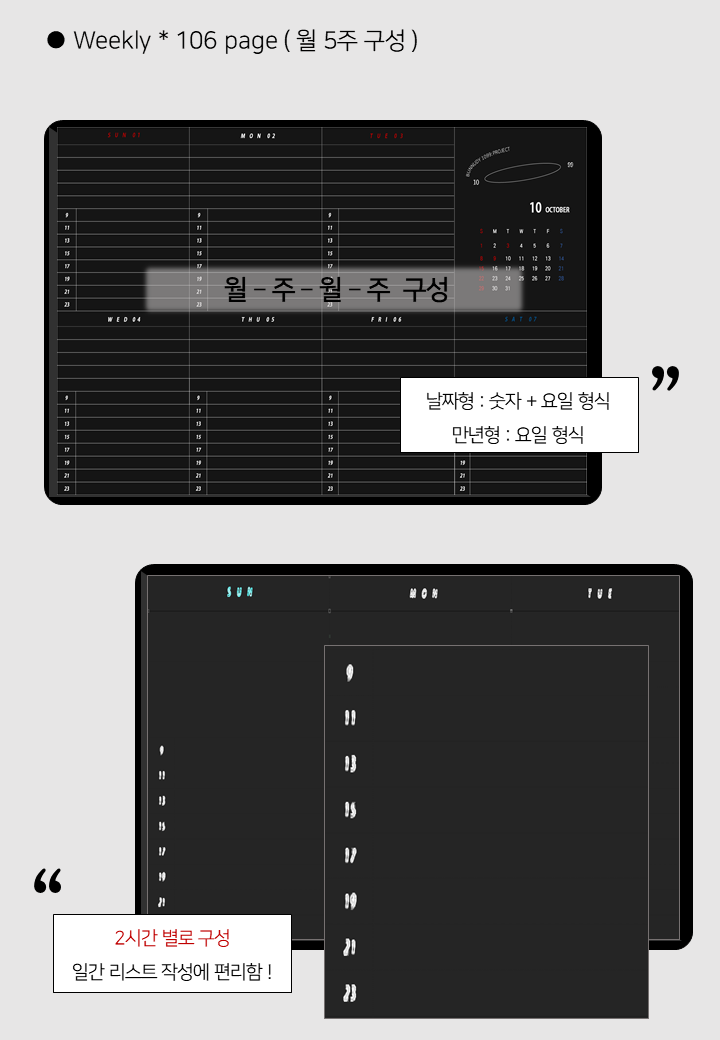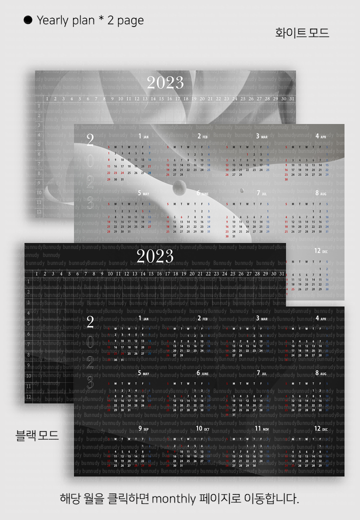 기본 구성 : 연간 계획, 캘린더, 먼슬리, 위클리