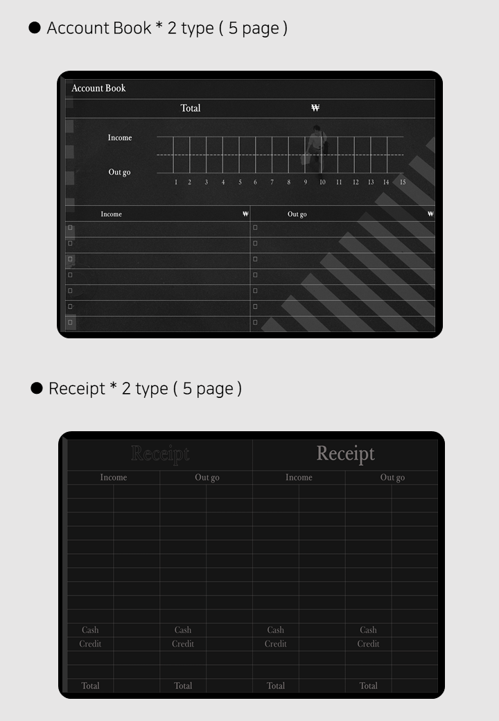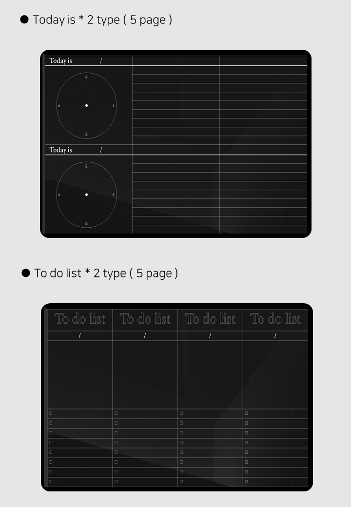 추가 구성 : To do list, 가계부, 책 & 영화노트, 스티커북