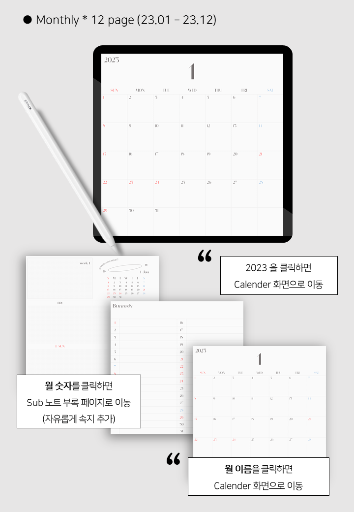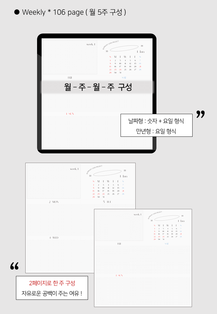 기본 구성 : 연간 계획, 캘린더, 먼슬리, 위클리