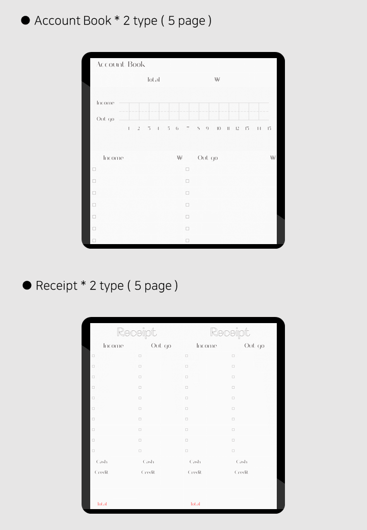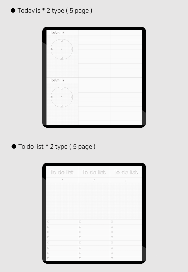 추가 구성 : To do list, 가계부, 책 & 영화노트, 스티커북